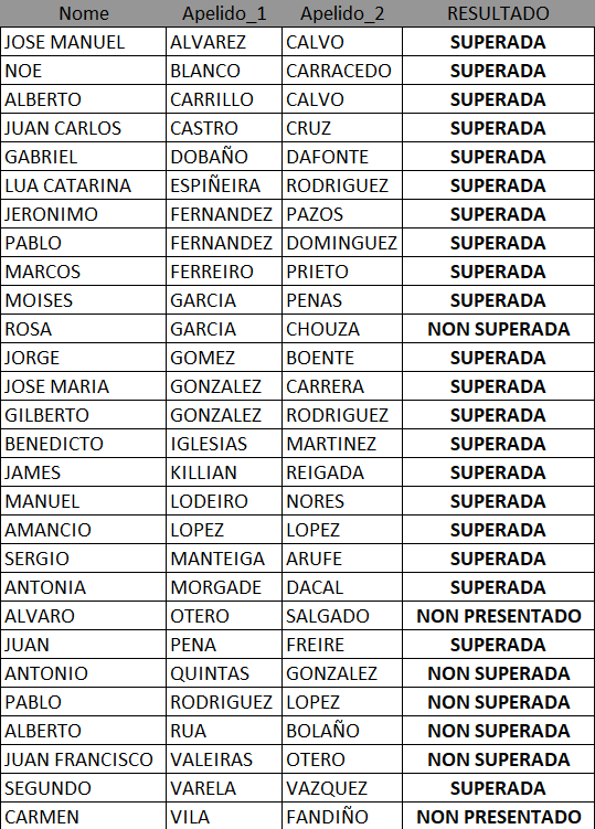 Resultados das probas físicas e de agudeza visual do persoal admitido nas listas de contratación temporal adicado ás tarefas de prevención e extinción de incendios forestais.